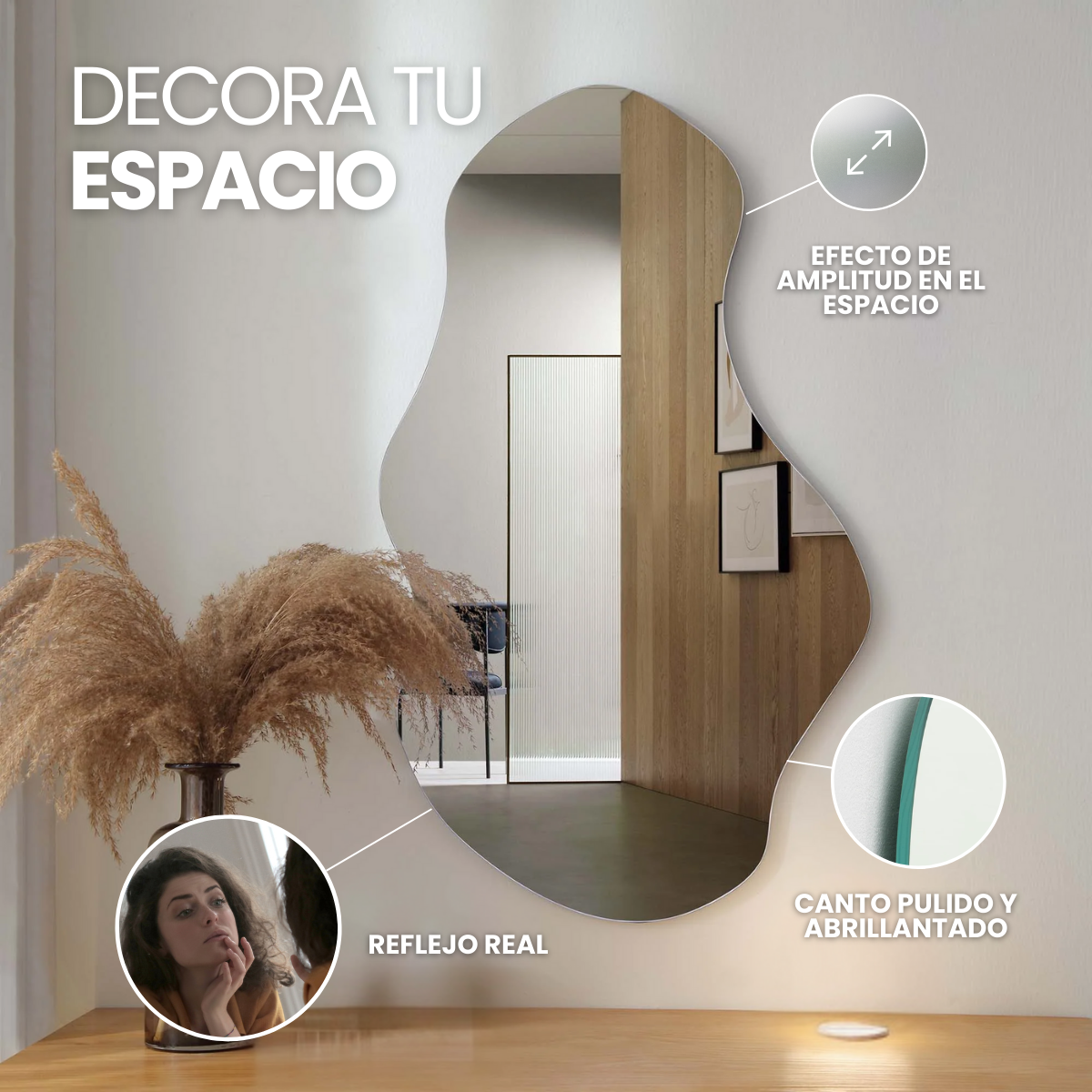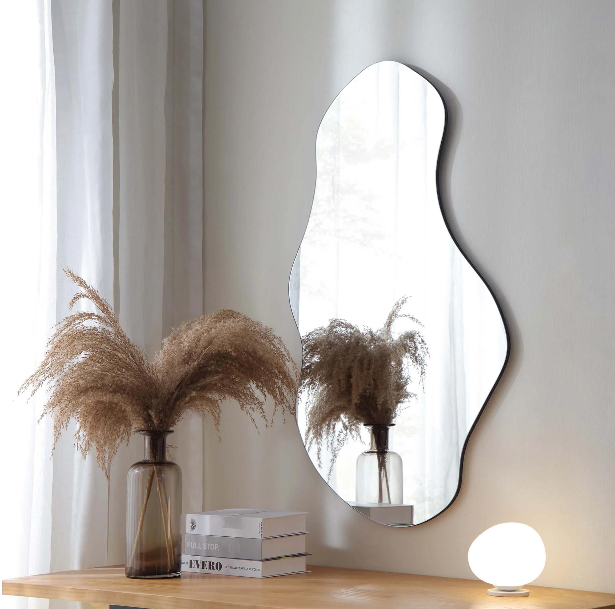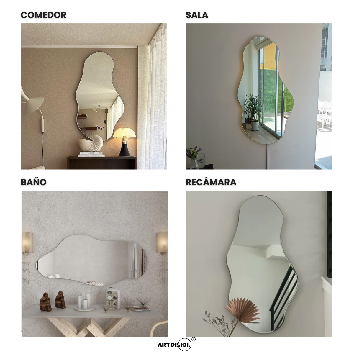 El espejo "Amorfo" es libre, fluido y contemporáneo. Este espejo de forma orgánica rompe con lo convencional y aporta un aire artístico a cualquier rincón. Ideal para mentes creativas que buscan piezas únicas y expresivas.