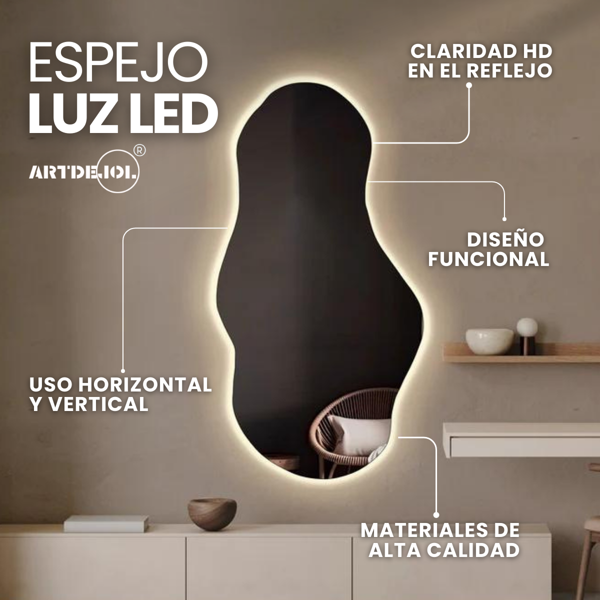 En Espejol Design creamos piezas que trascienden lo funcional: productos que se convierten en atmósferas, reflejos de sofisticación y arte en cada detalle.